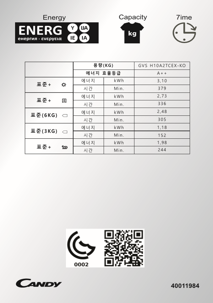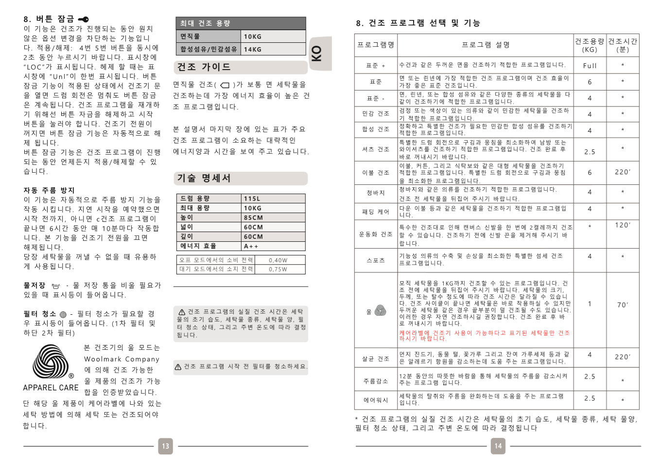캔디 히트펌프 건조기 사용설명서(매뉴얼)