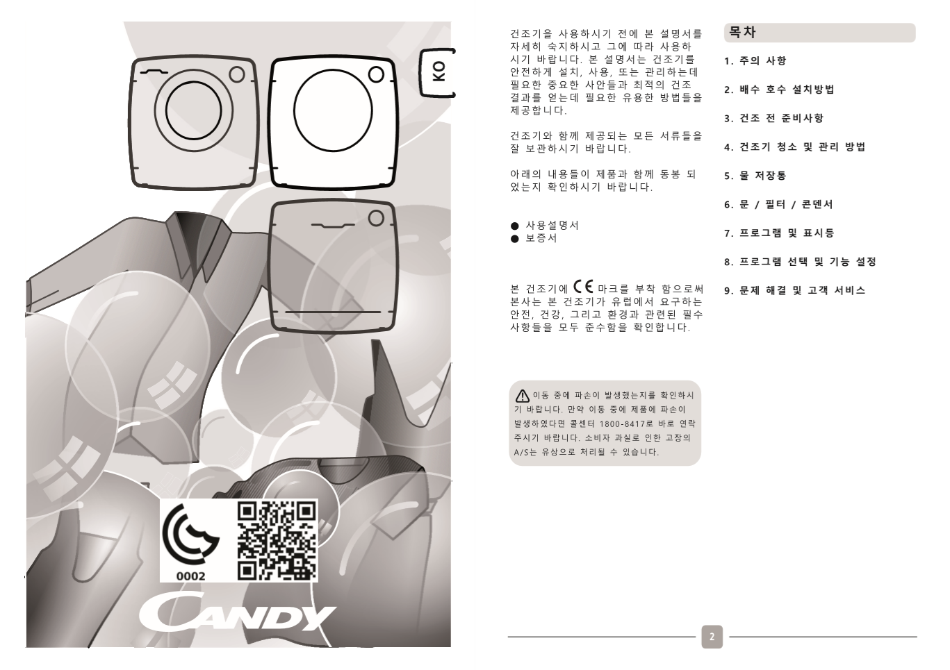 이탈리아 명품 건조기 캔디 히트펌프 건조기 매뉴얼 입니다.
