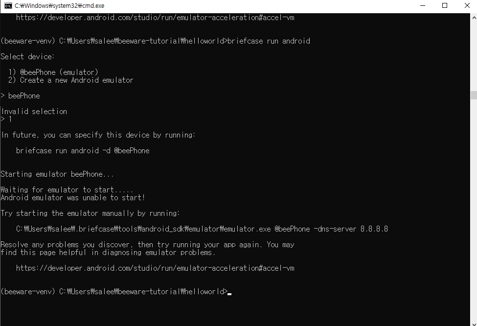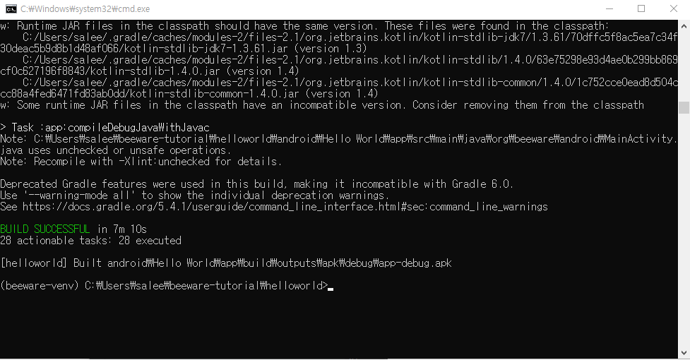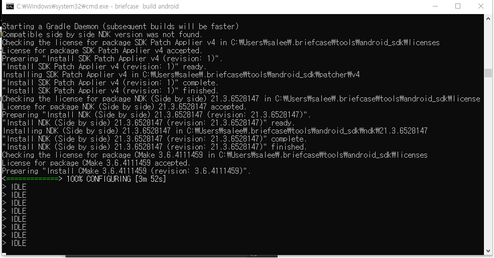 튜토리얼에 따라서 briefcase create android 를 진행하니 중간에 멈춰있더라.