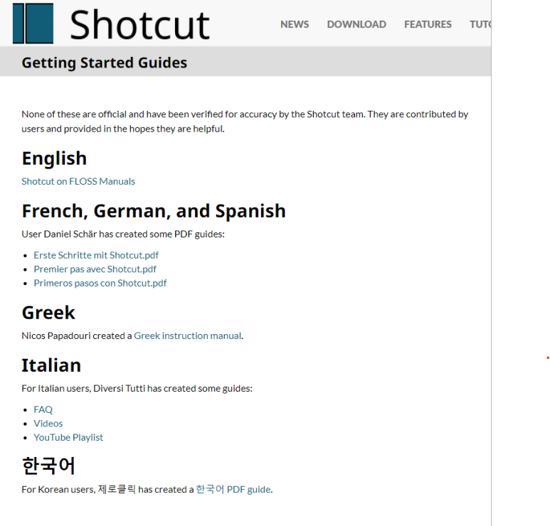 내용을 보면 아시겠지만, 샷컷에서 공식적으로 만든 문서가 아니기 때문에 형식과 내용의 차이가 있을 수 있습니다.(한국어는 제가 만든 시작 매뉴얼이 있습니다.)