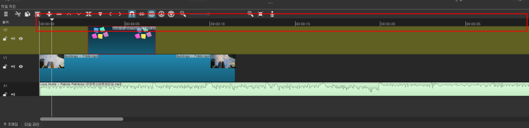 타임라인의 위쪽 부분을 보시면 시간이 표시되어 있는 부분이 있습니다.