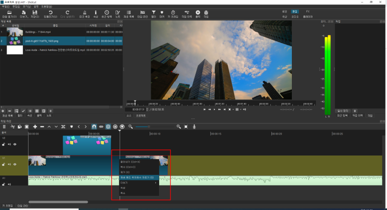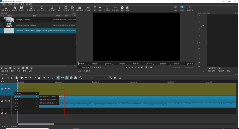 2022.04.18 - [글쓰기/샷컷 책쓰기] - 샷컷 책쓰기 #3. 파일을 여는 2가지 방법(영상, 이미지, 음악 타임라인에 옮기기)