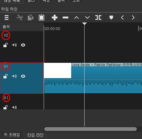 비디오 트랙을 추가하면 출력 부분에 V1, 2, 3...