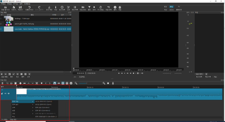 그럼 비디오 트랙과 오디오 트랙을 하나씩 추가해봅시다.