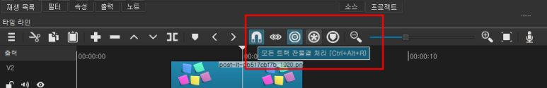 보시는 것 처럼 이 버튼은 하나의 트랙에 잔물결 효과가 적용되는 것이고, 다른 버튼은 모든 트랙에 잔물결 효과가 적용되는 것입니다.
