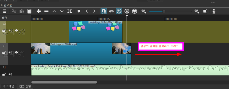 재생목록에 있는 영상을 다시 타임라인에 가져와서 원하는 만큼으로 다시 잘라야 할까요?