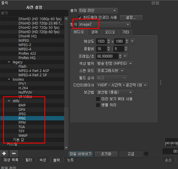사전 설정을 끝까지 내려보면 이미지 형식들이 많이 있는데 이걸 사용하면 될까요?