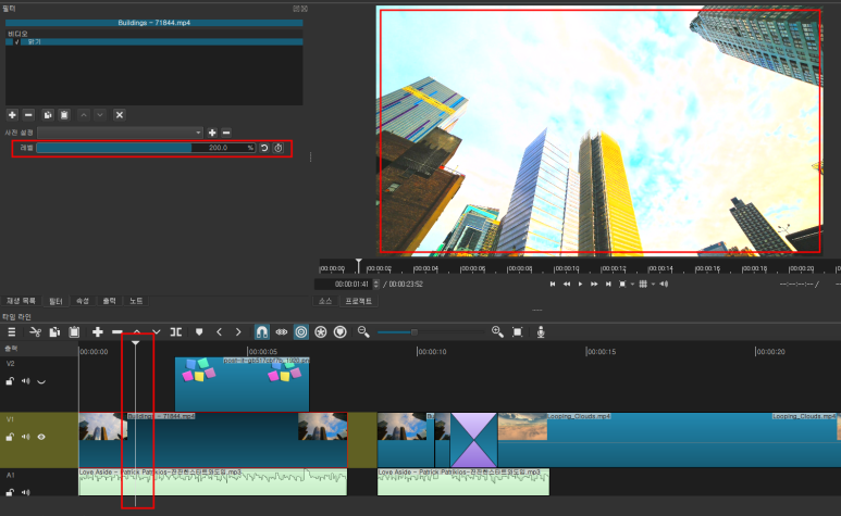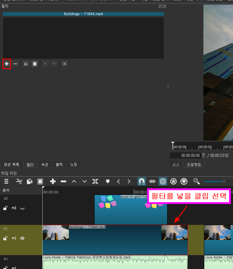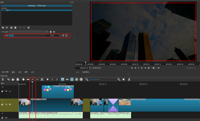 필터를 넣기 전에는 항상 편집점도 같이 이동 시켜 주시는 것이 좋답니다.
